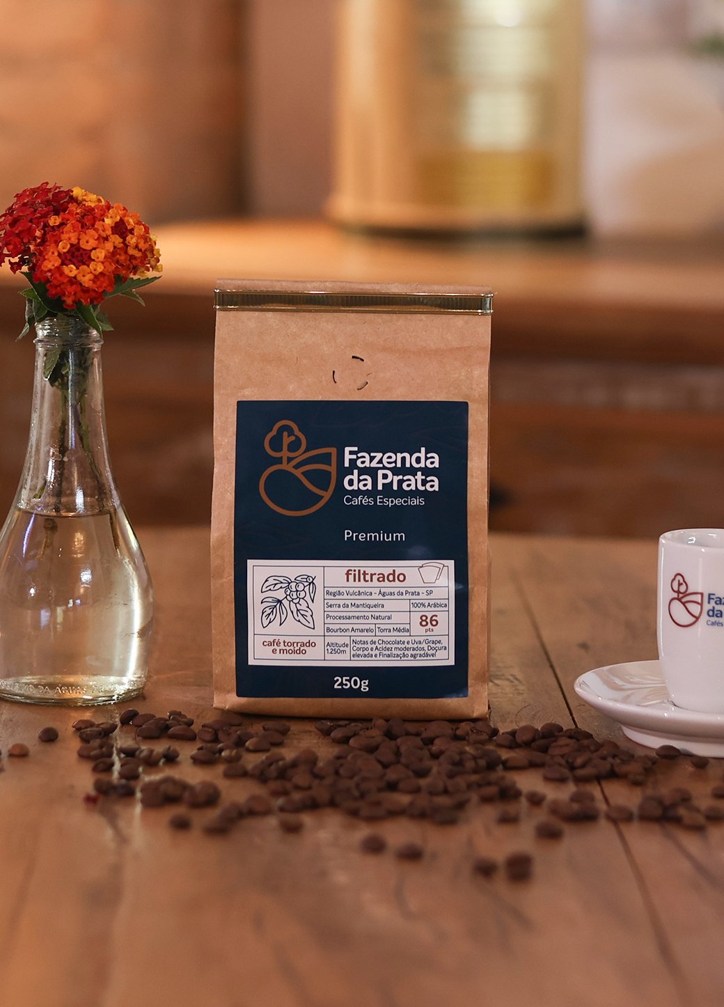 A Fazenda da Prata, está localizada nas Serras Vulcânicas de Águas da Prata, região Mogiana do Estado de São Paulo, nos contrafortes da Serra da Mantiqueira, Altitude média de 950 a 1250 metros. Região privilegiada com condições ideais para o cultivo de cafés especiais. Nossa loja oferece micro lotes exclusivos, tanto autorais quanto de parceiros da região de Águas da Prata, com pontuações acima de 85 pela BSCA (Associação Brasileira de Cafés Especiais).